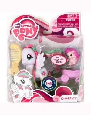 BLOSSOMFORTH loves the sunshine! Its her job to push the clouds out of the sky whenever they hide the sun for too long.This little pony figure is ready to play! Poised and pretty, your BLOSSOMFORTH pony figure has such a cheerful face because she loves to spend time with you. Set her off on new adventures with her fashionable wagon, and her pet hedgehog figure can join in the fun! Act out fanciful stories about pony pals or just take her with you as you go about your day shes always happy to come along!Pony figure includes comb, hedgehog and wagon.