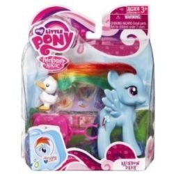 RAINBOW DASH loves to fly as fast as she can! She is always ready to play a game, go on an adventure, or help out one of her friends.When your family goes on a trip, you need a pony friend to come along, and your RAINBOW DASH pony cant wait to get on the road! Pack her suitcase and get her tickets ready. She comes with a duck friend, too! Youll never have a better travelling buddy than your RAINBOW DASH pony!