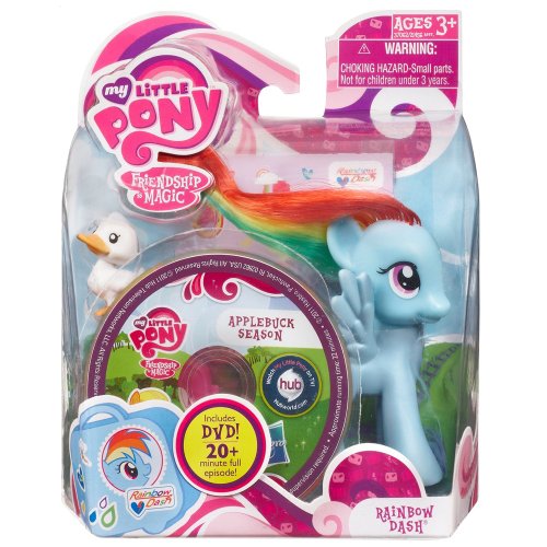 RAINBOW DASH loves to fly as fast as she can! She is always ready to play a game, go on an adventure, or help out one of her friends. When your family goes on a trip, you need a pony friend to come along, and your RAINBOW DASH pony can't wait to get on the road! Pack her suitcase and get her duck friend and tickets ready. This pony friend comes with a special surprise--a movie you can both enjoy! Cuddle up with your RAINBOW DASH pony and watch the DVD and then act out the story with your own pony figure! The DVD features "Applebuck Season," a 20+ minute full episode from the TV series starring your favorite pony friends.