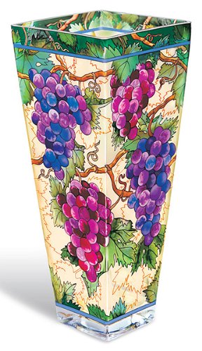 Amia 10-Inch Tall Hand-Painted Glass Vase Featuring a Colorful Grape Design Review